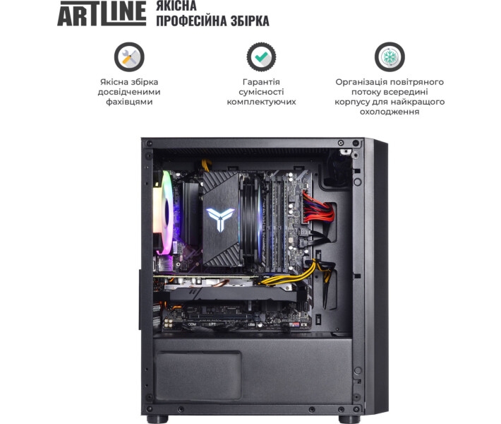 ARTLINE Gaming – це ігрові персональні комп'ютери, покликання яких бути розважальним центром для будь-якого користувача. При створенні моделей проводиться ретельний підбір, оцінка можливостей та сумісність кожного компонента. Завдяки різноманітності серії Gaming, кожен зможе підібрати собі модель, виходячи з особистих уподобань. Ігровий ПК ARTLINE Gaming X61v19 побудований на платформі материнської плати ASRock B550M-HDV з роз'ємом AM4 та підтримкою процесорів AMD всіх поколінь Ryzen. Має технологію ASRock Full Spike Protection, яка охоплює цілу низку інженерних рішень для захисту від електричних навантажень, корозії та інших проблем. А також набір всіх сучасних інтерфейсів та портів (USB 3.1 Gen1, гігабітний Ethernet, PCIe Gen4x4 ASRock Hyper M.2 NVMe) та багато іншого. У ролі процесора виступає AMD Ryzen 5 5600 з 6 ядрами, 12 потоками та частотою до 4.4 ГГц на ядро. Створений на 7-нм техпроцесі, цей чіп має гарну продуктивність. Його вдале співвідношення ціни і якості робить його найбільш відповідним варіантом у цій збірці. Встановлена потужна відеокарта для ігор, яка побудована на архітектурі NVIDIA Ampere – GeForce RTX 3050 8 ГБ. Вона підтримує трасування променів і прискорення алгоритмів штучного інтелекту, а також нові технології від компанії Nvidia, які дозволяють зробити картинку ще більш реалістичною. 16 ГБ оперативної пам'яті покоління DDR4 з ефективною робочою частотою 3200 МГц забезпечать швидку та стабільну роботу ПК. Високу швидкість відгуку ОС та програм забезпечить M.2 NVMe SSD-накопичувач ємністю 1 ТБ. Всі комплектуючі ARTLINE Gaming X61v19 розміщені в ефектному корпусі QUBE BLOCK ARGB з блоком живлення на 600 Вт та комплектом RGB вентиляторів. Купівля професійно зібраних комп'ютерів нашої компанії – це не лише придбання надійного помічника на багато років, але гарантія якісного техобслуговування на весь період експлуатації. Ігровий комп'ютер ARTLINE Gaming – це Ваша перепустка у світ популярних ігор.