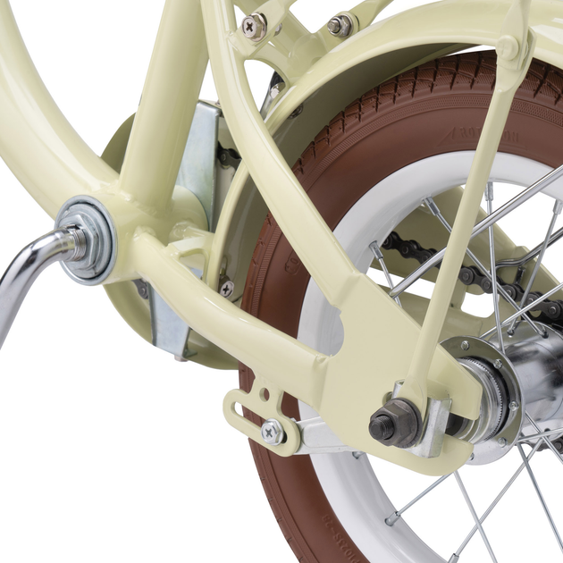 Диск колеса 12" традиційний, зі спицями та класичною втулкою на підшипниках. Високий та широкий профіль покришок забезпечить комфортну їзду як по асфальту, так і по нерівностях. Колеса додатково захищені металевими бризковиками, забарвленими у колір велосипеда. Вони надійно захистять від бруду і бризк. У комплект велосипеда входить: 2 катафота( червоний та білий), дзвіночок на кермо, набір інструментів для збирання та обслуговування велосипеда, кошик з натурального ротангу, набір бокових навчальних коліс.