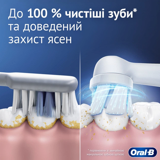 Вбудований 2-хвилинний таймер із поділом на чверті нагадує про рівномірне очищення всіх зон ротової порожнини. Щітка працює від акумулятора, має компактну та ергономічну ручку, корпус захищений від вологи. Сумісна з насадками серії iO, що дозволяє легко налаштувати догляд під особисті потреби.