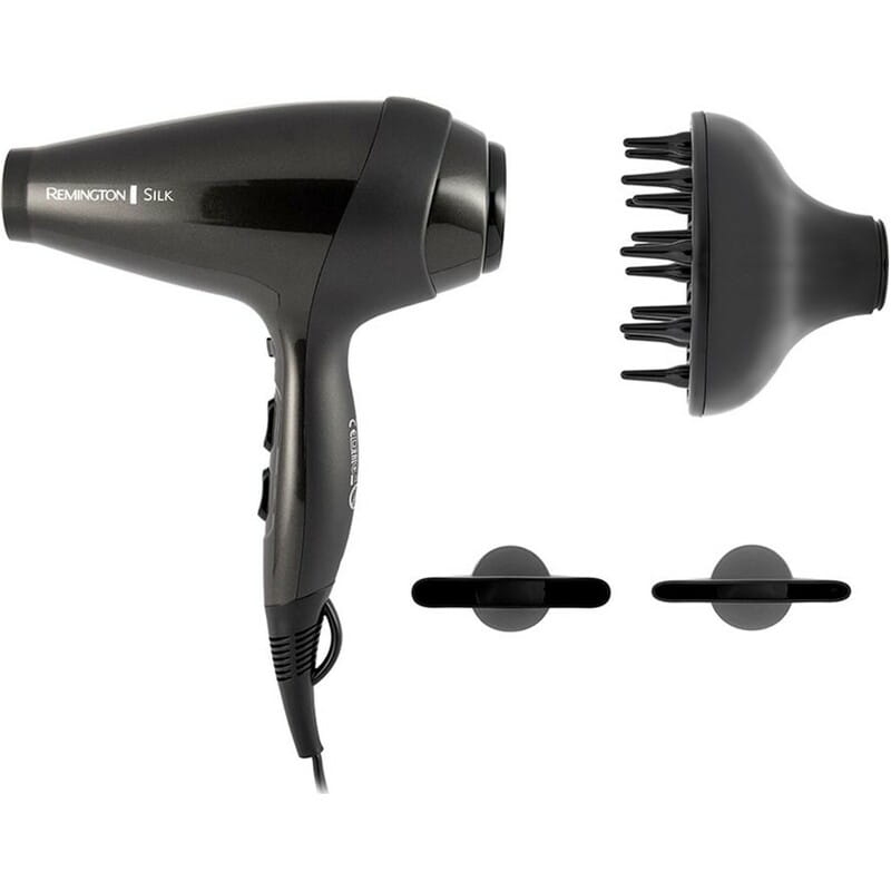 Потужний фен AC9095 з лінійки Silk від компанії Remington з АС-мотором максимально швидко й ефективно висушить ваше волосся. Завдяки АС-мотору, який зазвичай використовується в професійних фенах, продуктивність цього фена вражає, його потужність становить 2400 Вт, а швидкість подавання повітря 140 км/год. Також фен має функцію іонізації, 2 швидкісні та 3 температурні режими, турборежим і холодне обдування для фіксації укладок. Окрім того, АС9095 має 3-метровий салонний шнур для зручності використання.