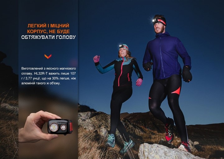 - Налобний ліхтар HL32R-T для трейлраннінгу та інших видів спорту.