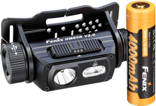 Ліхтар Fenix HM60R 2.0, Li-ion акумулятор ARB-L18-4000 (18650), кабель USB Type-C, запасне ущільнювальне кільце, інструкція користувача, гарантійний талон.