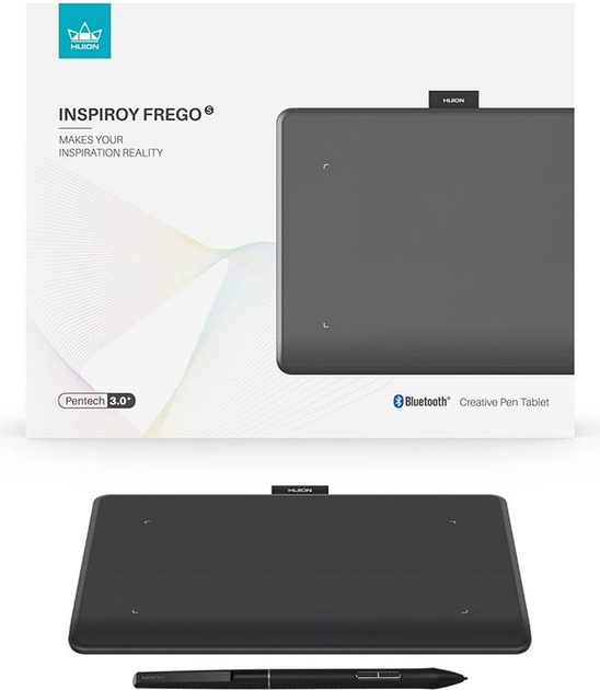 У комплекті з Inspiroy Frego йде тонке перо PW550S діаметром 9.5 мм і з відстанню втягування 0.4 мм для надійного малювання. У наявності стандартні та фетрові наконечники на вибір, фелтові наконечники відчуваються як олівець. Крім того, є дві програмовані бічні кнопки, які дають змогу мати швидкий доступ до таких функцій, як пензель, гумка, наближення та скасувати дію.