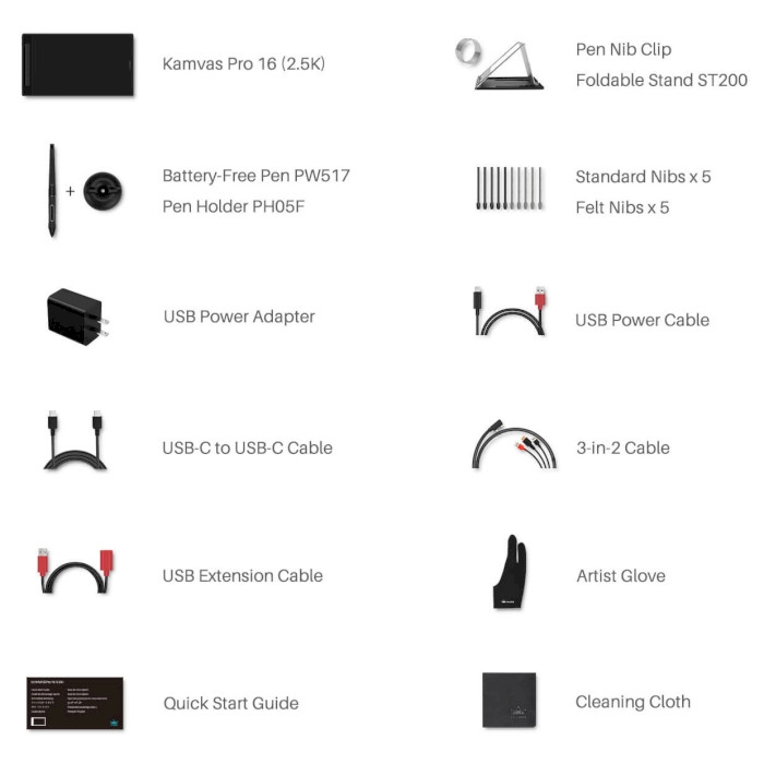 Користувачі можуть перемикати Kamvas Pro 16 (2.5K) між режимом дисплея і режимом пір'яного планшета, щоб зняти втому і заощадити заряд батареї. Регульована підставка ST200 може використовуватися для підтримки творчості під різними кутами.