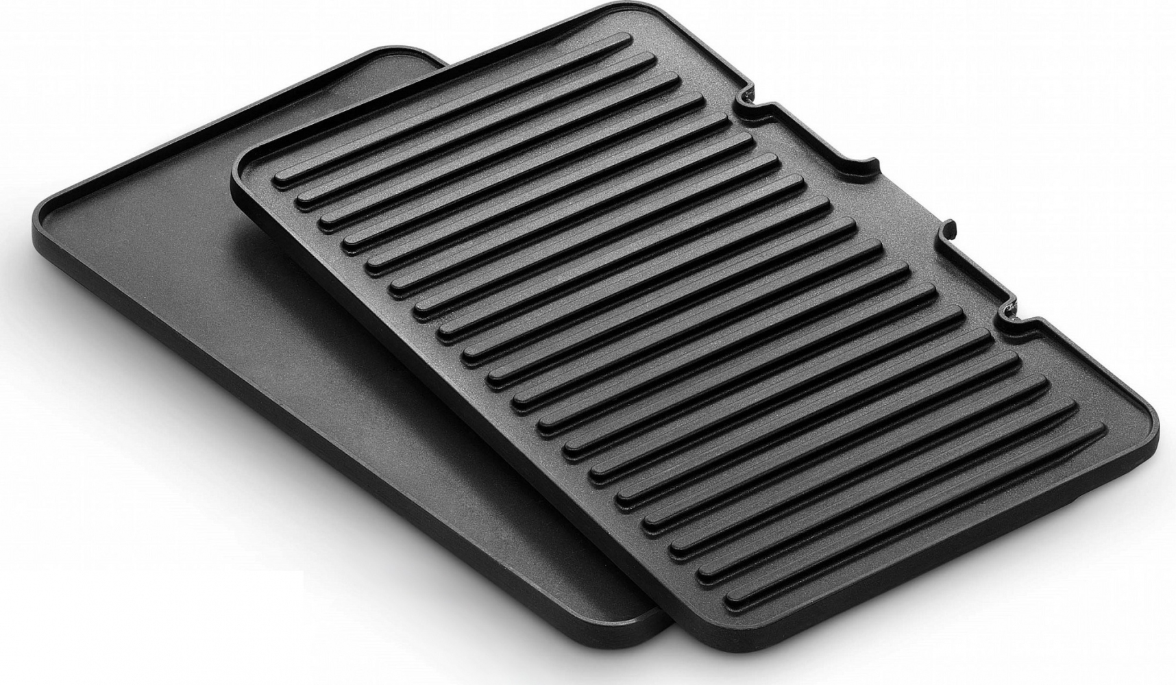 - У комплекті повний набір пластин для приготування на грилі та сковороді.