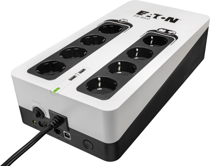 ДБЖ Eaton 3S Gen2 дозволяє забезпечити живлення від резервного акумулятора під час вимкнення електроенергії, а також пропонує функцію вдосконаленого захисту від перенапруги, яка вбереже ваше обладнання від ефектів удару блискавки або випадкових коливань напруги в мережі. Архітектура засобу захисту від перенапруги відповідає міжнародному стандарту IEC 61643-11. Пристрій для захисту від перенапруги Eaton 3S Gen2 також обладнано роз’ємом RJ11/xDSL, який захищає мережевий шлюз доступу до Інтернету від збоїв на лінії передачі даних.