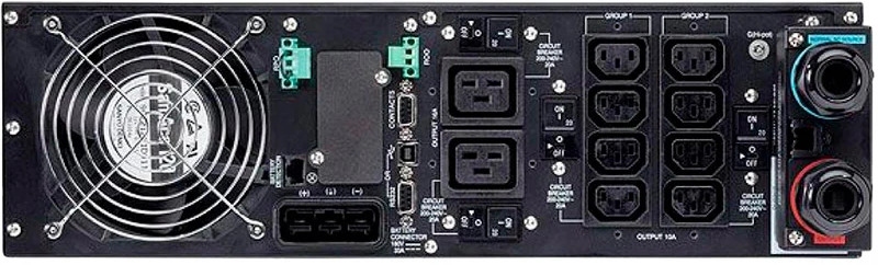 Пристрій оснащений різноманітними вихідними роз'ємами, серед яких IEC-320 C13, USB тип B, RS-232, та IEC-320 C19. Завдяки цьому, можна підключити широкий спектр обладнання, що робить цей ДБЖ універсальним рішенням для різних потреб.