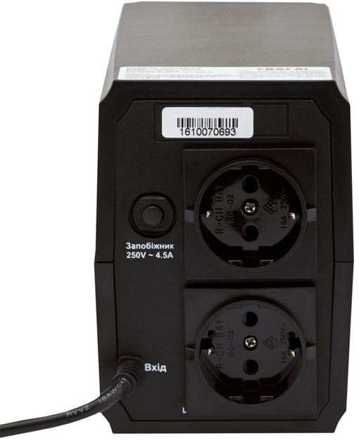 Захисний функціонал інтерактивного джерела безперебійного живлення передбачає: захист від короткого замикання, стрибків напруги, перевантаження, розряджання та надлишкового заряджання батарей. Автопідзаряджання пристрою відбувається у вимкненому стані. Має 2 євро-розетки, функції холодного старту та повторного запуску під час відновлення напруги в мережі.
