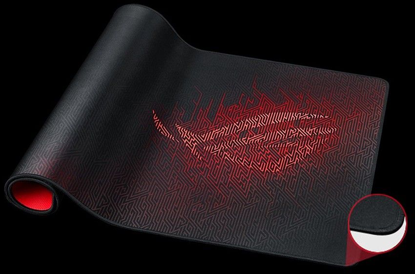 ROG Sheath - це дійсно великий килимок. Його розмір становить 900 х 440 х 3 мм, тому на його поверхні можна розмістити не тільки мишу, але і клавіатуру і навіть ноутбук.Практичний дизайн