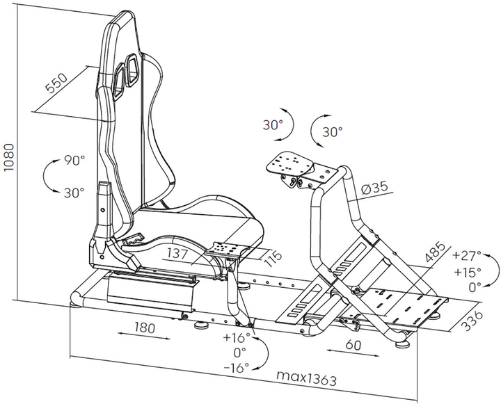 - Спинка крісла може регулюватися під кут від 30° до 90°.
