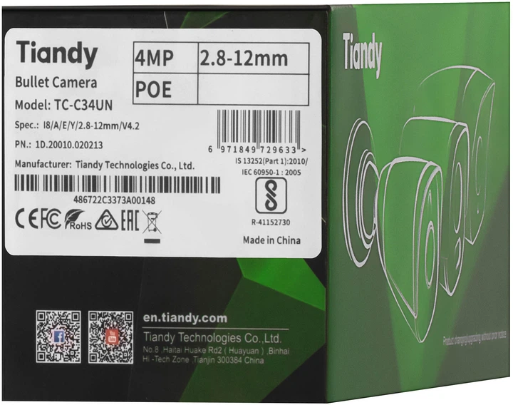 Камера IP TC-C34UN - це високоякісна вулична камера для відеоспостереження з роздільною здатністю 4 мегапікселі. Вона оснащена об'єктивом з автоматичним змінним фокусуванням (AVF) діапазоном 2.8 - 12 мм і апертурою f/1.6, що забезпечують чітке зображення з різною глибиною різкості.