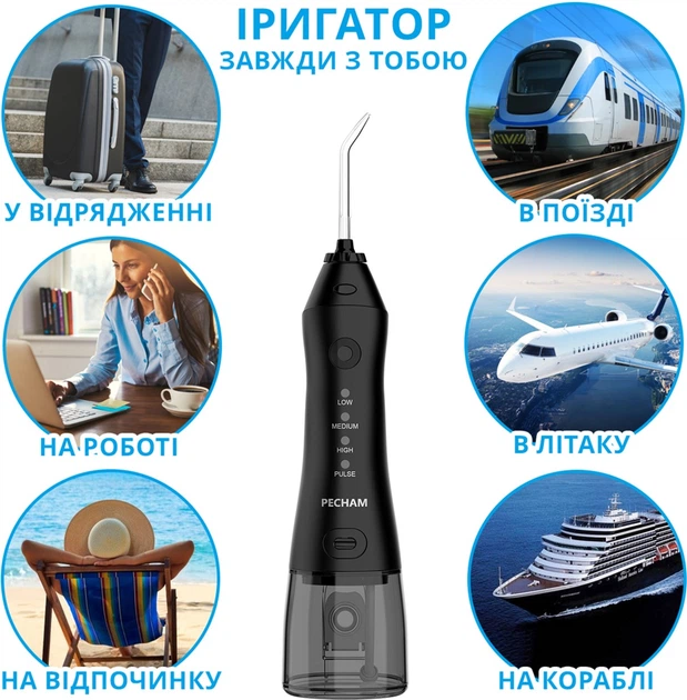 Можна користуватися іригатором вдома, на роботі, в подорожі.Зручно брати з собою
