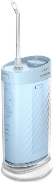 Philips Sonicare Compact Flosser 1000 — зручний портативний іригатор, який допомагає ефективно очищати міжзубні проміжки та лінію ясен. Завдяки компактному корпусу із знімним/складним резервуаром на 200 мл його легко брати з собою в дорогу або використовувати у ванній.