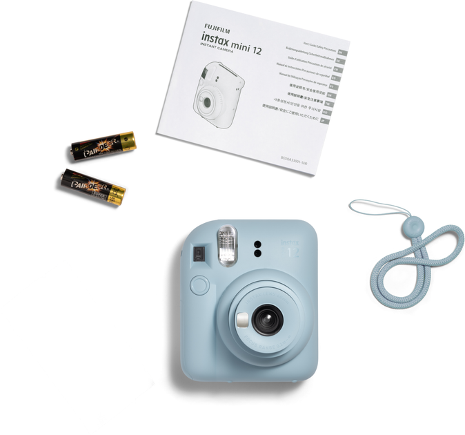 Надзвичайно яскрава камера INSTAX mini 12 наповнена радістю, творчістю та кольором. Ця культова камера миттєвого фільмування не лише доступна в п'яти яскравих тонах – пастельно-блакитному, м'ятно-зеленому, ніжно-рожевому, бузково-фіолетовому та глиняно-білому – вона ще й має безліч зручних режимів та елементів керування.