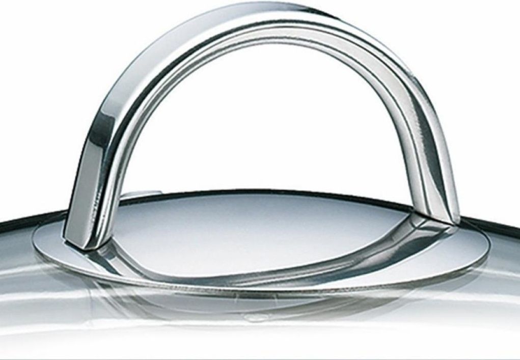 Скляна кришка оснащена ручкою з нержавіючої сталі.