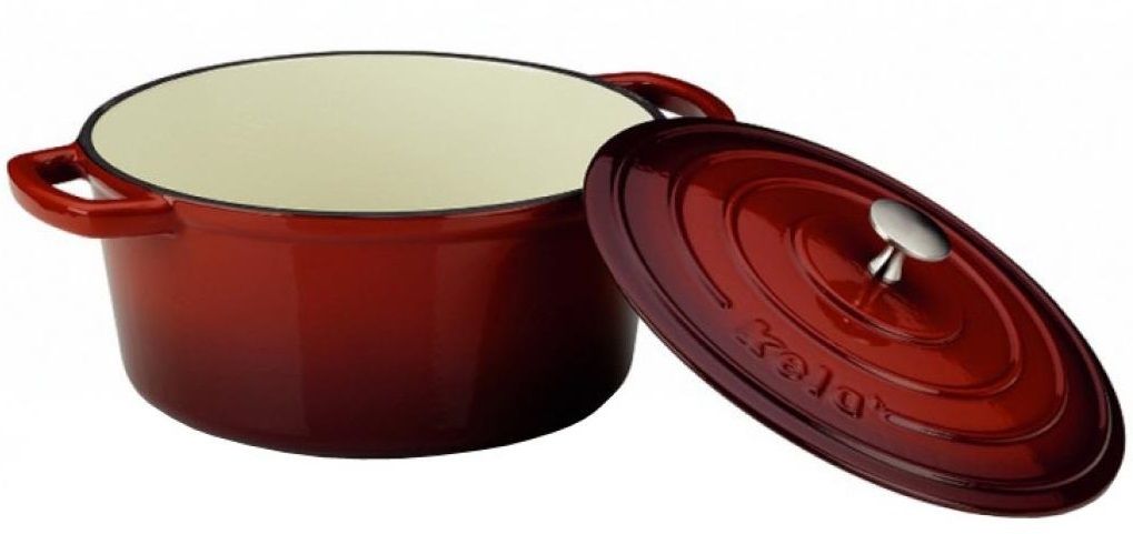 Модний кухонний посуд із тривалим терміном експлуатації із серії KELA Calido: кругла чавунна каструля з кришкою діаметром 21 см і об'ємом 2.5 літра.