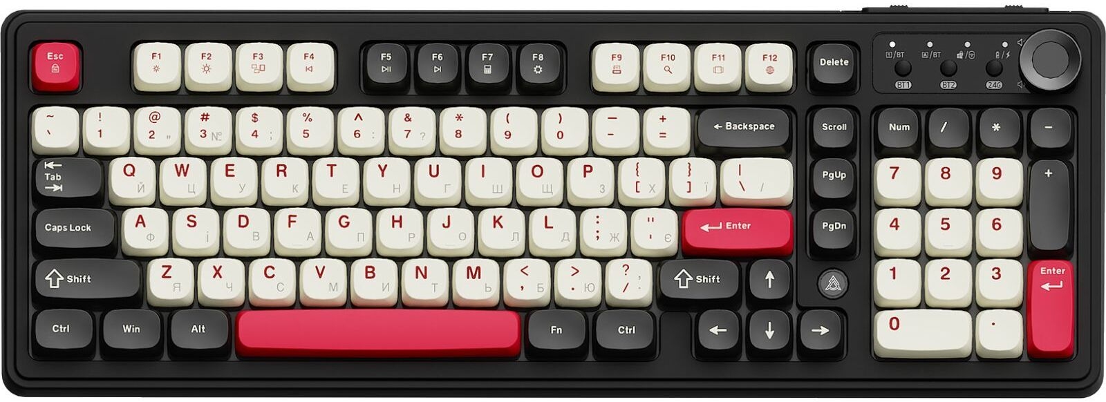 Ajazz AF98 PLUS — універсальна бездротова мембранна клавіатура, що поєднує практичний форм-фактор, тиху роботу та розширені можливості підключення.
