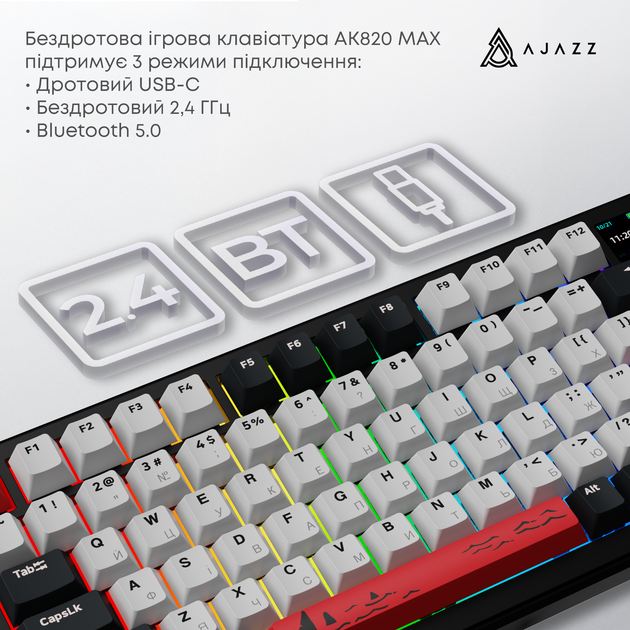Ajazz AK820 MAX – це чудовий вибір для тих, хто шукає якісну бездротову механічну клавіатуру з комфортним друком, плавним натисканням і стильним RGB-підсвічуванням. Вона підходить як для геймерів, так і для офісної роботи!