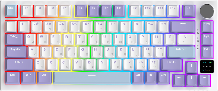 Клавіатура оснащена кольоровим TFT-дисплеєм, який дозволяє зручно керувати різними функціями без необхідності встановлення додаткового ПЗ. На дисплеї можна переглядати: