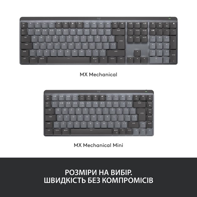 Клавіатури MX Mechanical працюють до 15 днів при повному заряді або до 10 місяців з вимкненим підсвічуванням. Поставте клавіатуру на зарядку через USB-C кабель всього на 15 хвилин, і цього вистачить на цілий день постійного використання.КОНСТРУКЦІЯ, ЯКУ ВИ БЕЗПЕРЕЧНО ОЦІНИТЕ