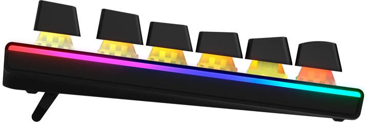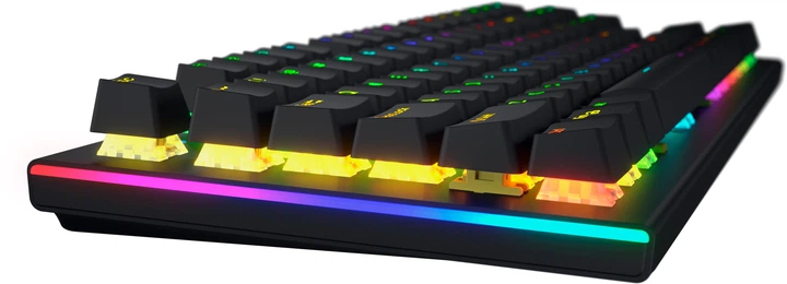 Компактна клавіатура формату TKL з алюмінієвою пластиною та надійними та швидкими лінійними перемикачами HATOR Aurum Orange забезпечить високу продуктивність та довговічність експлуатації. А RGB підсвічування кожної клавіші і подвійна система шумозаглушення відповідають за візуальний і акустичний комфорт при роботі з клавіатурою.