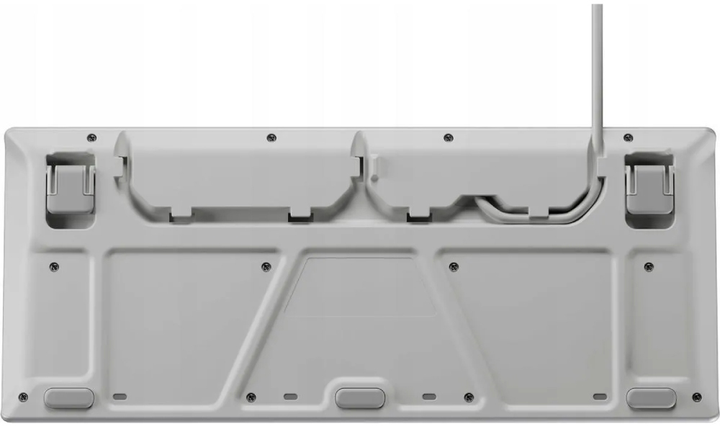 Корпус у графітовому кольорі має захист від проливання рідини, що підвищує довговічність клавіатури. Глибоке розташування клавіш і регульований нахил за допомогою ніжок забезпечують комфорт під час роботи.
