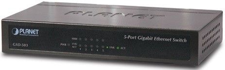 Гігабітний комутатор для дому та малого офісу Planet GSD-503 має п'ять портів 10/100/1000 Мбіт/c з автовизначенням швидкості та має компактний корпус, який дозволяє розмістити комутатор на столі або прикріпити його до стіни. Пристрій має неблоковану архітектуру у 10 Гбіт/с. Модель дозволяє передавати пакети на повній швидкості роботи мережі, що дозволяє уникнути втрати пакетів. Гігабітні порти з підтримкою пакетів великої довжини (Jumbo frame) надають можливість транслювати великі обсяги даних та використовувати комутатор для зв'язку між серверами.