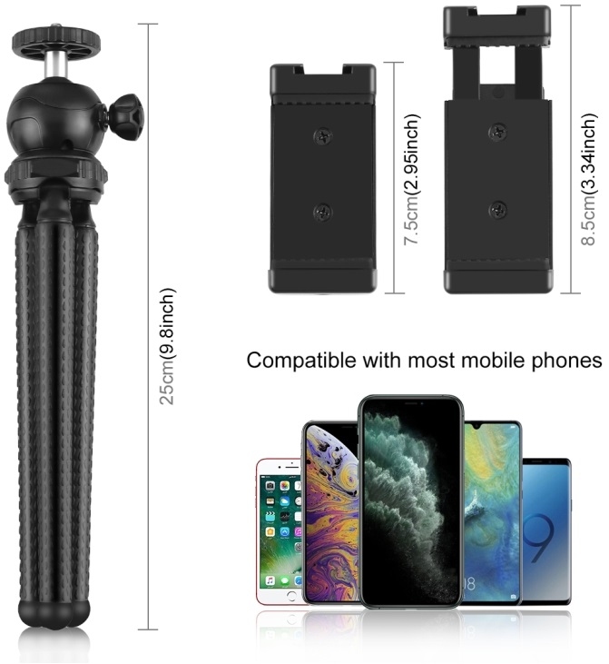 - Гнучкі ніжки штатива дають змогу нахиляти камеру під різними кутами та знімати особливі моменти. Ви також можете розмістити його де завгодно, наприклад, на ліхтарних стовпах, забірних стовпах, гілках дерев, стільцях, дверних ручках тощо.