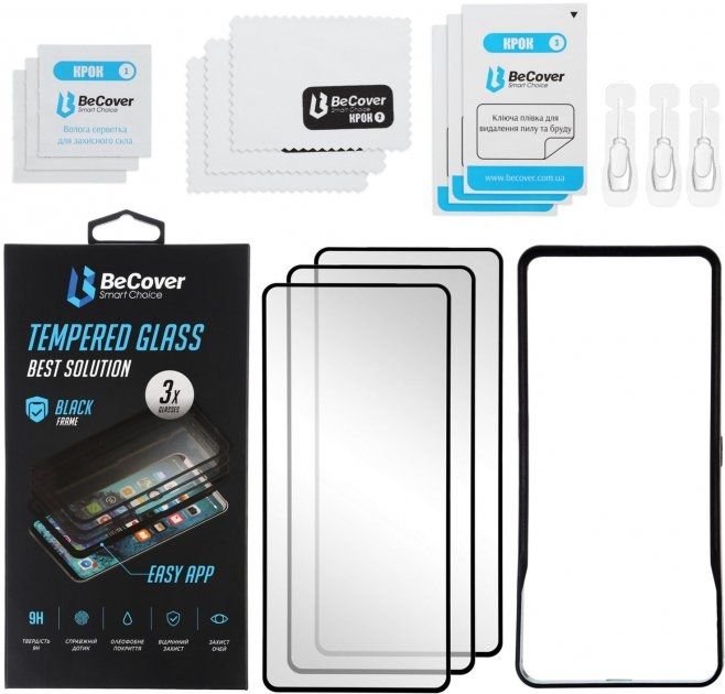 Комплект захисних стекол BeCover Premium Easy Installation 3 шт. для Xiaomi Redmi Note 9 / 10X (705483) Clear