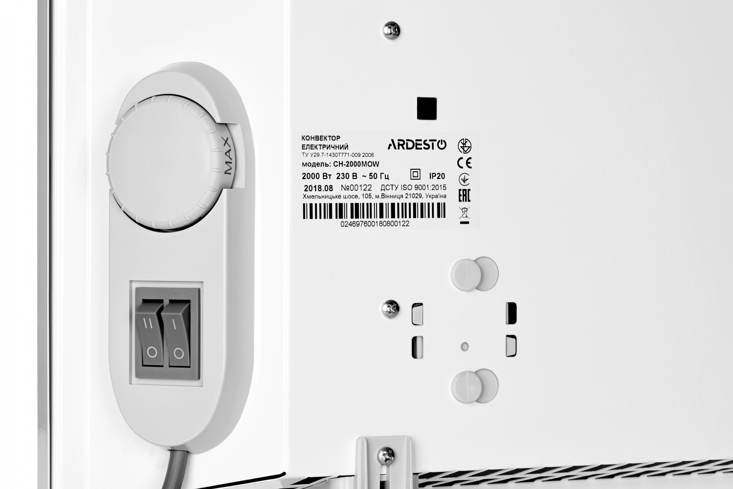 Конвектор ARDESTO CH-2000MOW обладнаний термостатом, а також простим і надійним блоком керування.