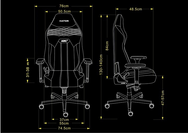 Крісло підтримує максимальний кут нахилу спинки до 170° і витримує навантаження до 150 кг для розміру L. Магнітні бокові накладки у фірмовому дизайні легко фіксуються, а спеціальний контейнер HATOR NFC custom TAG system дозволяє активувати збережені дії на смартфоні одним дотиком.