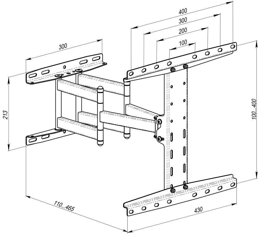 Кронштейн підходить для плазмових, LCD, LED телевізорів і моніторів з діагоналлю 39-65 дюймів і вагою до 50 кг. Підтримуваний стандарт VESA: від 100×100 мм до 400×400 мм.Переваги кронштейна WMO-7346T:
