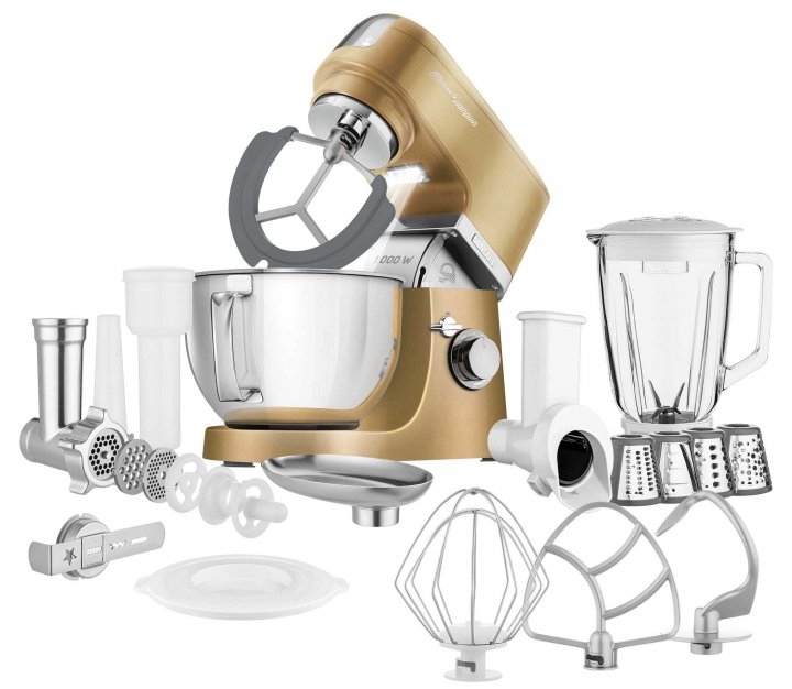 - Характеристики Загальні характеристикиТип управлінняМеханічнекількість насадок6ОсобливостіІмпульсний режим , Захист від перевантаженняКомплектаціяКухонна машина , Блендер , Гак для замішування тіста , Вінчик для збивання , ІнструкціяГарантіяГарантія: 12 місяцівПотужність1000 ВтКількість швидкостей8Об'єм блендера1.5 лОб'єм чаші4.5 лДодатковоДодаткові насадкиЄмність із матеріалу Тритан для приготування смузіГабарити, Колір, ВагаШирина225 ммВисота330 ммГлибина370 ммВага7.9 кгМатеріалиМатеріал чашіКласифікаціяТип