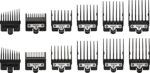 В комплекті - 10 насадок-гребінців для регулювання від 0,5 до 8 (0,8 мм - 25 мм).