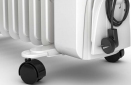 Радіатор працює безшумно, не завдаючи дискомфорту користувачам. Завдяки маневреним колесам та ергономічній ручці прилад максимально мобільний – переміщаючи, можна нагріти велику площу. Передбачений гачок для намотування кабелю у неробочий час. Масляний радіатор абсолютно безпечний – усі «гарячі» елементи приховані, а сам корпус нагрівається лише до 60 градусів. Додатково є функція Anti ice для підтримки мінімальної температури у приміщенні проти промерзання стін.