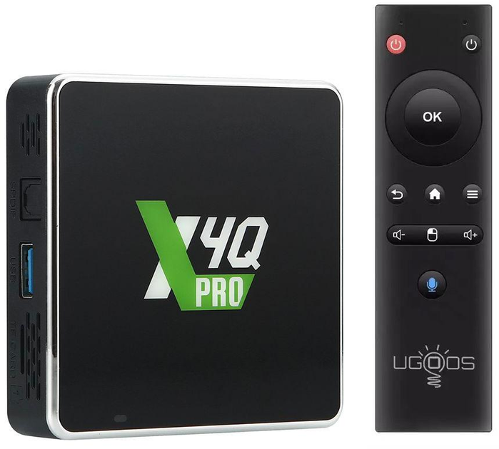 TV Медіаплеєр Ugoos X4Q PRO працює на базі вдосконаленого чотириядерного процесора Amlogic S905X4, що дає змогу передавати відео у високій роздільній якості 4Kx2K при 60 Гц, підтримувати кодеки H.265 HEVC, MPEG-4 ASP і VP9 та багатоканальні стандарти аудіо. Оперативна пам’ять об’ємом 4 ГБ забезпечує швидкий запуск додатків та 3D ігор. Для зберігання даних доступно 32 ГБ вбудованої пам’яті. При потребі її можна додатково розширити, додавши TF карту об’ємом до 32 ГБ. Зручний інтерфейс на основі операційної системи Android 11 надає легкий доступ до великої кількості додатків - ви зможете легко управляти файлами, переглядати відео та шукати необхідну інформацію через пошукові системи мережі Інтернет.