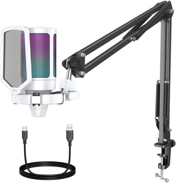 Пакет USB-мікрофона для ігрового комп’ютера включає:- стоячий комп’ютерний мікрофон із амортизаційним кріпленням - 1 шт.