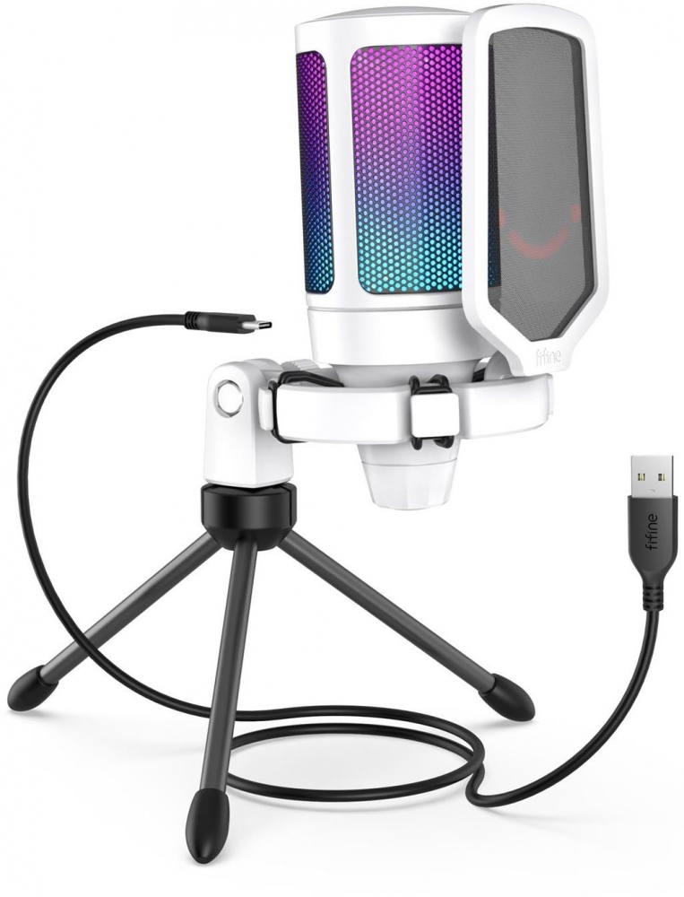 - Опис Fifine AmpliGame – якісний ігровий мікрофон з усіма необхідними аксесуарами, стане справжнім подарунком для досвідченого геймера. Якісний звук із глибокими низькими та чистими високими частотами, зручна тринога, вражаюче RGB-підсвічування, знімний поп-фільтр. Мікрофон працює на консолі Windows, Mac та PlayStation. USB порт розташований прямо за мікрофоном, що робить підключення зручнішим.