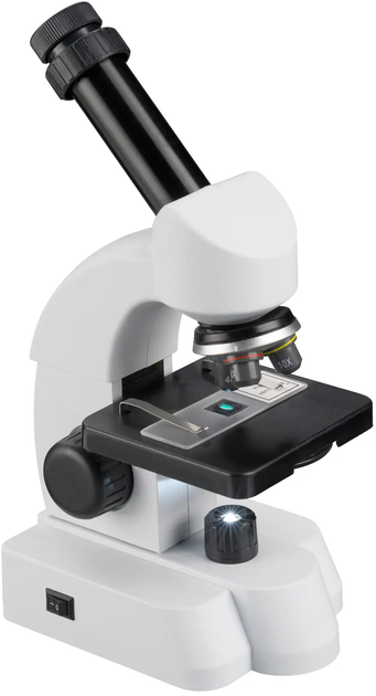 Bresser Junior 40x-640x являє собою сучасний мікроскоп для дитячого розвитку. Мікроскоп укомплектований великою кількістю різних аксесуарів, готових слайдів для перегляду, оснащений револьверною головкою з трьома об'єктивами, що дають у комплексі із зум-окуляром збільшення до 640х.