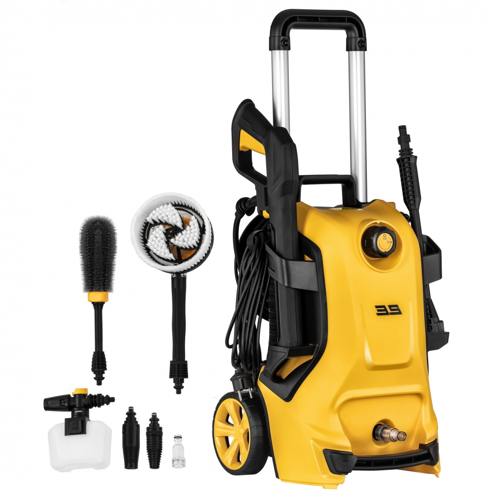 - Характеристики КласифікаціяРештаВикористання шампунюМаксимальний тиск175 барСпоживана потужністьПродуктивністьМаксимальна температура води40 °CДовжина шланга5 мКомплектаціяЩітка для коліс , Фільтр для води , Подовжувач , Турбосопло , Піноутворювач , Голка для чищення сопла , Шланг , Міні-мийка , Пістолет високого тиску , ІнструкціяЗагальні характеристикиГарантіяГарантія: 24 місяціГабарити, Колір, ВагаВага10.35 кг
