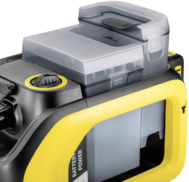 Апарат має компактну конструкцію і завдяки живленню від акумулятора Kärcher Battery Power 18 В (не входить до комплекту постачання) може використовуватися в місцях, де немає можливості підключитися до електромережі.