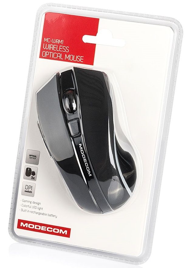 Миша MC-WRM1 — це бездротова оптична миша, призначена для людей, що шукають комп'ютерне обладнання з оригінальним і хижим дизайном. Дизайн миші MC-WRM1 був натхненний лінійкою продуктів Modecom Volcano, тому проект був розроблений саме на основі цієї популярної лінійки ігрових продуктів від Modecom. MC-WRM1 приверне ваші очі тонкою лінією бічних елементів, які під час вмикання наповнить ваші очі теплим світлодіодним світлом. З кнопкою DPI над колесом прокрутки ви вибираєте одне з трьох підтримуваних оптичних роздільних здатностей: 1000/1200/1600 і з вбудованою батареєю ємністю 350 мА·год, ви забудете про наявність запасних батарей. Тепер ви можете заряджати акумулятор у будь-який час через слот microUSB на передній панелі навіть під час гри. Під'єднання миші до комп'ютера відбувається через технологію бездротового радіозв'язку, що працює на частоті 2.4ГГц і забезпечує максимально далеке охоплення.
