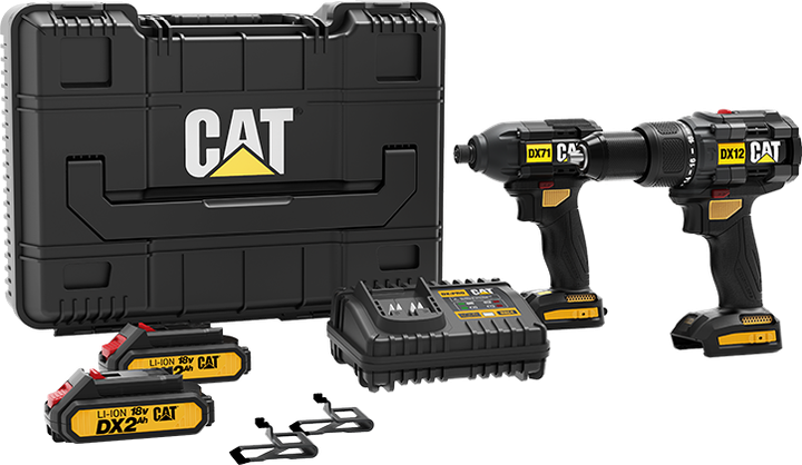 Відкрийте безмежні можливості з універсальним набором інструментів CAT, що задовольнить навіть найвибагливіших майстрів. Комплект складається з акумуляторного дриля-шурупокрута CAT DX12 і ударного гайковерта CAT DX71, обидва з потужними безщітковими двигунами та передовими технологіями енергоефективності. Незалежні від дротів, ці інструменти забезпечують високу продуктивність, комфортну роботу та тривалий термін служби акумулятора. Легкі, зі зручним хватом та стійкі до ударів, вони готові до будь-яких завдань.