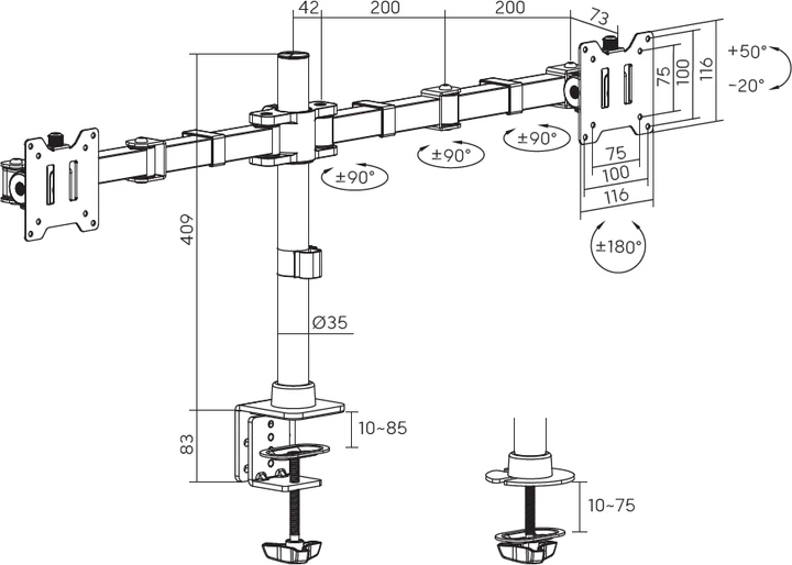 Подвійне кріплення для моніторів Officepro MA112B — це надійне рішення для професійного робочого простору, здатне витримувати два ультрашироких монітори розміром до 35 дюймів кожен. Завдяки вантажопідйомності до 20 кг на екран, ця модель легко справляється навіть із важкими вигнутими або пласкими дисплеями. Конструкція забезпечує повне регулювання висоти, нахилу, обертання і повороту, дозволяючи підібрати максимально зручне положення для роботи. Інноваційна швидкознімна VESA-пластина пришвидшує встановлення й демонтаж. Металева основа зі сталі та алюмінію покрита зносостійкою порошковою фарбою, що гарантує довговічність і сучасний вигляд. Підходить для екранів з розміром від 17 до 35 дюймів, підтримує VESA 75x75 та 100x100. Кріплення дозволяє використовувати як затиск на край столу, так і встановлення через наскрізний отвір в стільниці. Це універсальне рішення для тих, хто прагне поєднати ергономіку, стабільність і гнучкість в одному аксесуарі.
