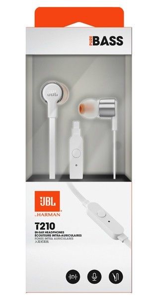 Великий динамік діаметром 8.7 мм укладений в пластиковому корпусі з хромованним зовнішнім оздобленням. Стильний дизайн JBL T210 підкреслить ваш повсякденний образ. Під час зберігання в кишені плоский провід довжиною 1.1 м не заплутається. Підключається аксесуар за допомогою L-подібного штекера 3.5 мм. Підберіть індивідуальний розмір силіконових вкладишів для більшого комфорту під час прослуховування музики. У комплекті поставляються 3 розміри змінних амбушюр.