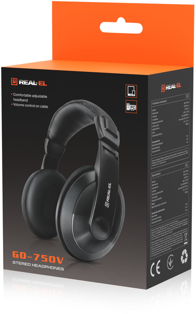 Стереонавушники Real-El GD-750V призначені для роботи зі звуковими картами ПК та іншими сумісними з ними системами. Особливості: регулятор гучності на кабелі, м'які амбушури.