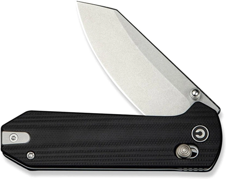 - Ергономічним руків`ям з бездоганною чистотою контурних ліній та Logo Civivi , у якого композитні накладки зі зручною підпальцевою виїмкою імітують поверхню зрізу натуральної деревини і мають шорстку поверхню - гарантує комфортне захоплення і надійне утримання навіть вологою рукою, зносостійке та ударостійке, не боїться температурних стрибків і контакту з водою або агресивними середовищами;