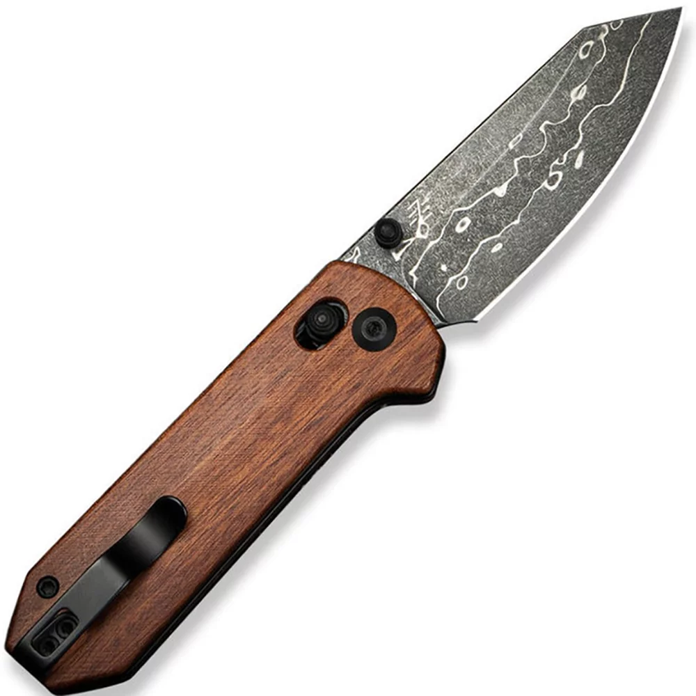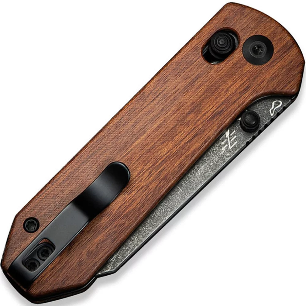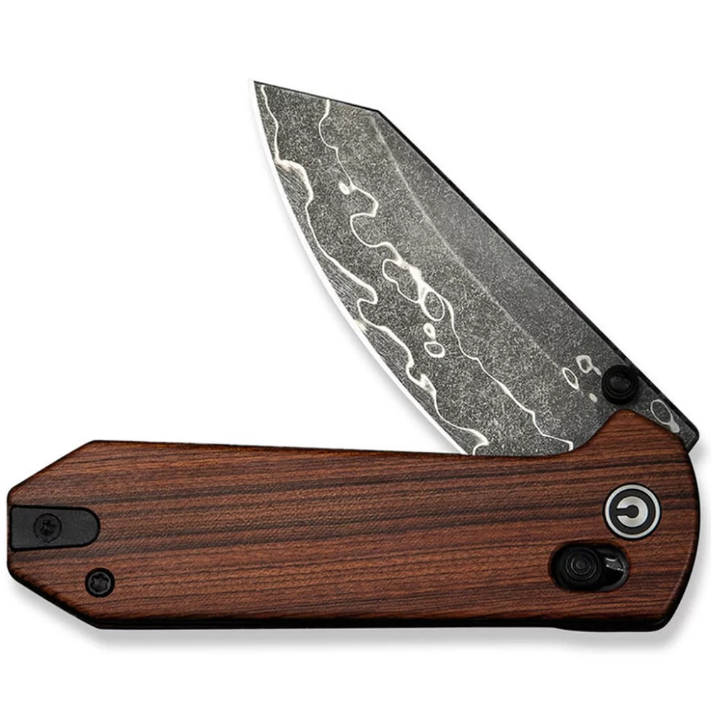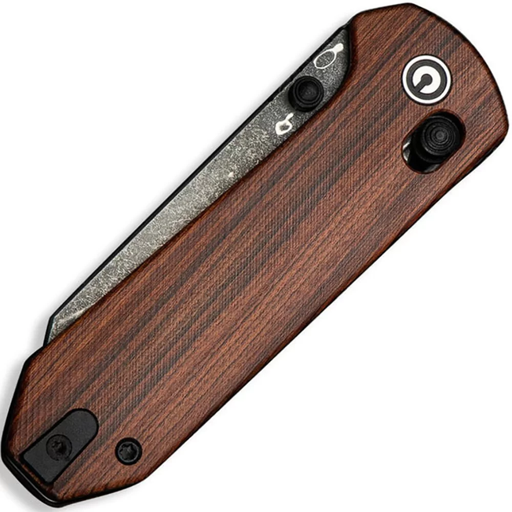 - Ергономічним руків`ям з бездоганною чистотою контурних ліній та Logo Civivi , у якого композитні накладки зі зручною підпальцевою виїмкою імітують поверхню зрізу натуральної деревини і мають шорстку поверхню - гарантує комфортне захоплення і надійне утримання навіть вологою рукою, зносостійке та ударостійке, не боїться температурних стрибків і контакту з водою або агресивними середовищами;