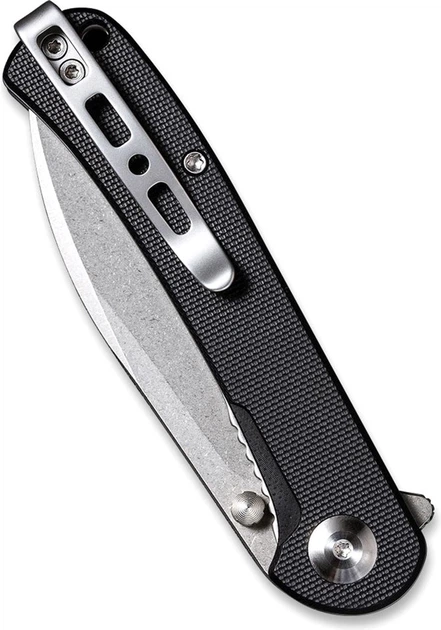 Sencut Scepter - це зручний та функціональний ніж класичної форми. Клинок чудово підійде як для розрізання, так і для проколювання, що видобувається фліпером. Ручка зручна, добре лежить у руці. Клинок до ручки досить короткий, завдяки цьому можна виконувати ножем точніші роботи. Також ніж оснащений зручною кліпсою для перенесення. Матеріал клинка 9Cr18MoV - це ідеальний варіант для повсякденних ножів. Цей метал захищений від корозії, завдяки додаванню молібдену та ванадію в сплав забезпечується міцність та зносостійкість. Загалом, за властивостями матеріал близький до 420HC, сталь загартована до 59 HRC. Ручка виконана з G10 – це композитний матеріал на основі склотканини та епоксидної смоли. Він дуже міцний, характеризується вологонепроникними та удароміцними властивостями. Прекрасно піддається обробці та фарбуванню. Важлива перевага – двосторонній глибокий затискач для кишень та отвір для шнурка. Завдяки цьому цей гострий легкий та комфортний у використанні. G10 - стійкий до вологи, тепла та більшості хімічних речовин. Це ідеальний матеріал для ножа. Завдяки керамічному кульковому підшипнику можна легко та безпечно використовувати цей ніж та носити у кишені. Добре підходить для виконання різноманітних завдань під час активного відпочинку, мисливства, кемпінгу, риболовлі. Аксесуар універсальний та зручний, його легко розмістити у рюкзаку, сумці чи кишені. Завдяки стильному вигляду, його можна розглянути як подарунок для родичів та друзів. Особливості: лезо з нержавіючої сталі з точковим покриттям; ергономічний дизайн; плавне відкриття однією рукою завдяки подвійній шпильці та вкладці фліпера з керамічними шарнірними підшипниками; текстурована чорна ручка G10 для додаткового захоплення рукою; лайнер-замок із фіксатором із фіксатором; кишені для носіння в глибокій кишені.