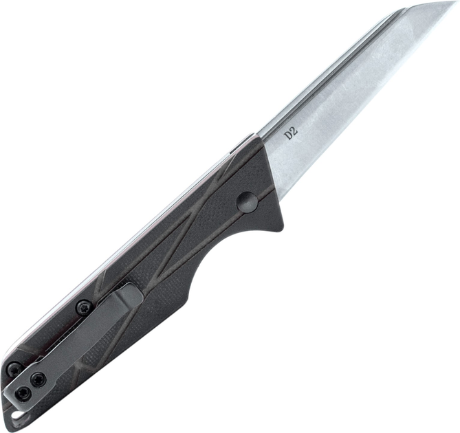 Ніж, який можна носити навіть у країнах із досить суворим ножовим законодавством завдяки фрикційній системі закривання клинка. Замок Slipjoint чудово зарекомендував себе на всесвітньо відомих Вікторіноксах, тому не можна сказати, що він застарів. Так, це не швидкий підшипниковий фліпер, але якості та впевненості різання йому не позичати, адже його форма клинка найдоречніша саме для різання, а не роботи на проколювання. Універсальне поєднання D2 на клинку і G10 на колодці припаде до смаку всім, хто стежить за новинами ножової індустрії, адже саме воно вже давно визнане оптимальним для міських умов. А щоб не робити ніж нудним, дизайнери попрацювали над візуалом: колодка поцяткована контрастними об'ємними смугами, утвореними яскравою підкладкою двоколірного композиту.